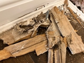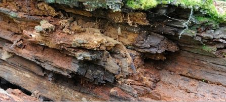 Dry Rot is a fungus which feeds off wood. It requires a lower level of moisture than the Wet Rot fungi. It has a root system (mycelium) that can spread behind plaster and into most building materials.